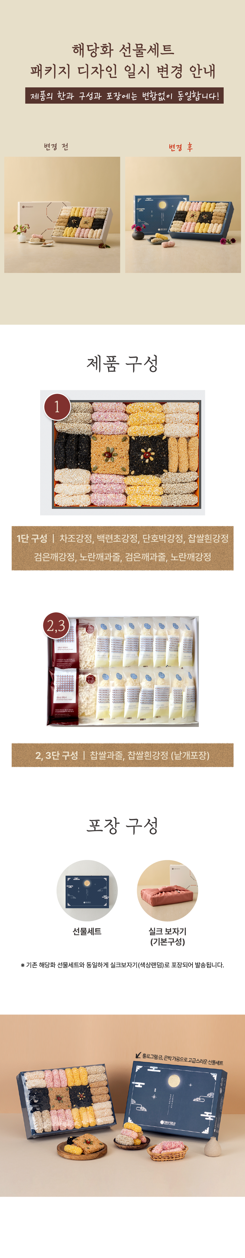 • 강릉은정한과 해당화 3단 선물세트+보자기포장 (전통 한과 수제 유과 답례품 명절 설날 추석선물) 상품번호 : 100032